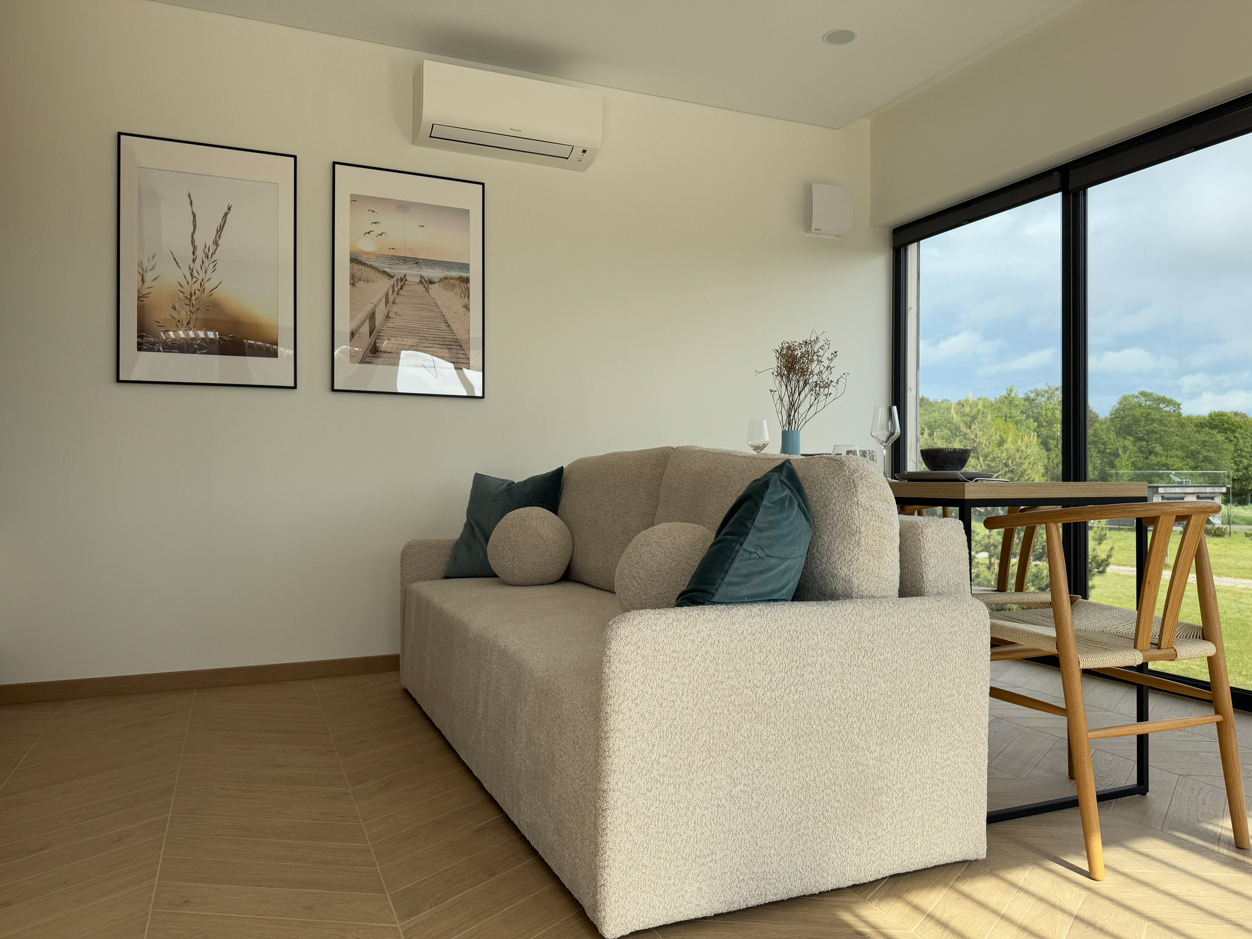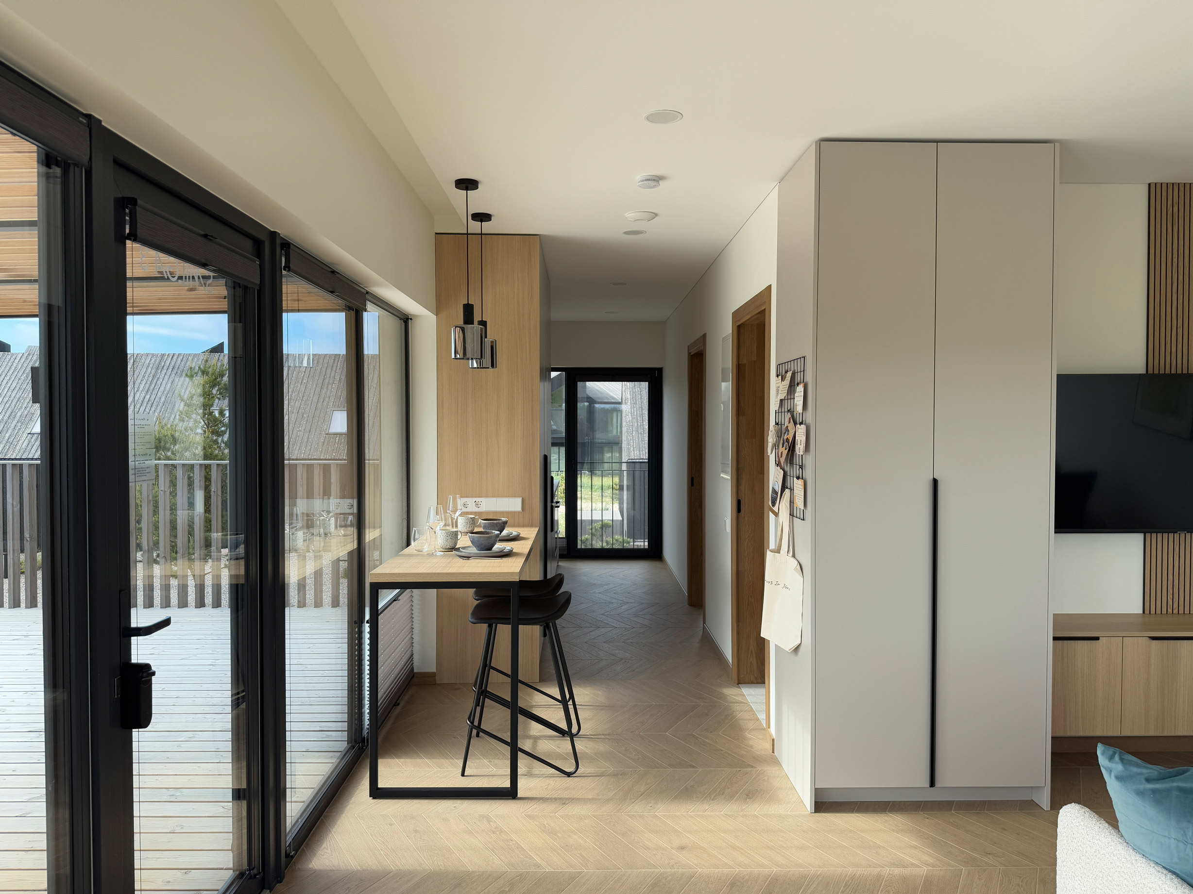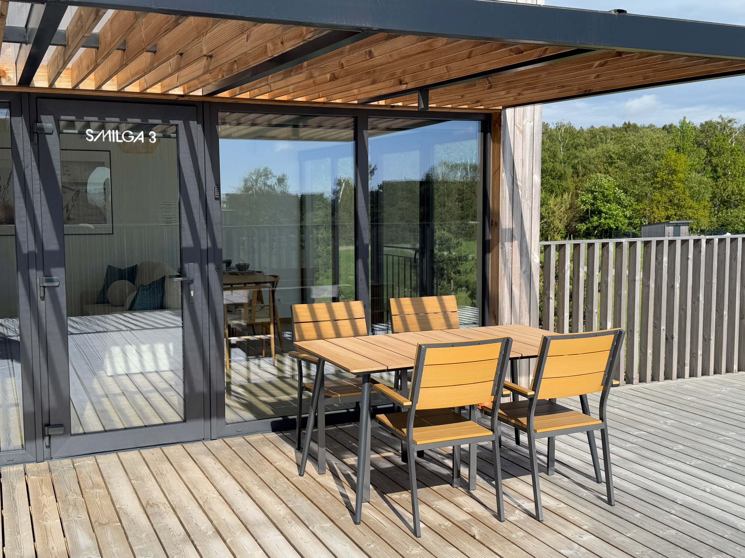 Smilga 3 apartment is located on the second floor of the Smilga house. It has large windows, huge terrace/balcony outside with the outdoor furniture. Fully equipped kitchen with a dining area, living room with a flat-screen TV, apartment is equipped with a workplace and free wi-fi.